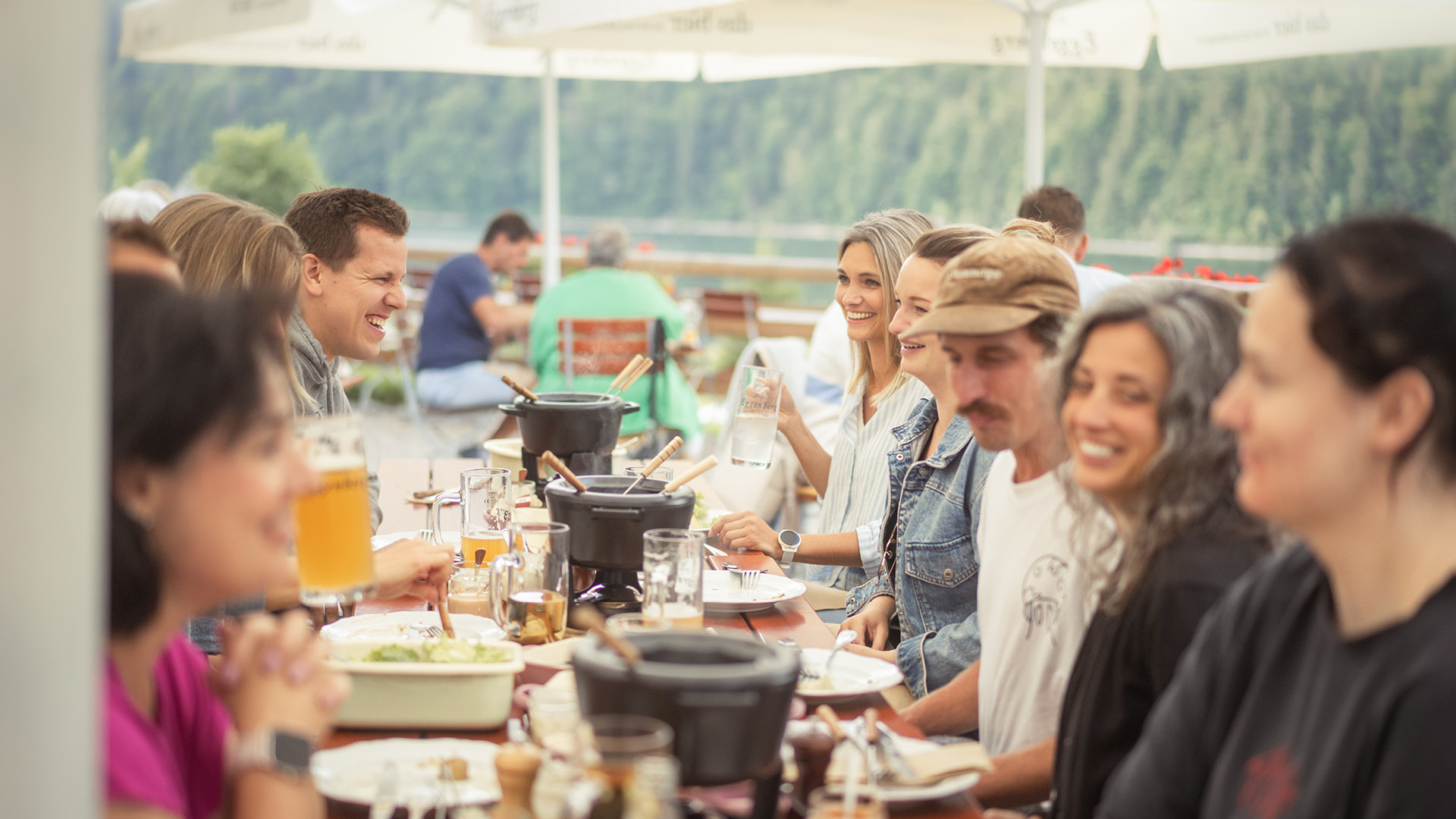 Hütten-Fondue, Reindlessen oder Almstadl XL-Jausenbrett? Eure Feier am Schwarzensee