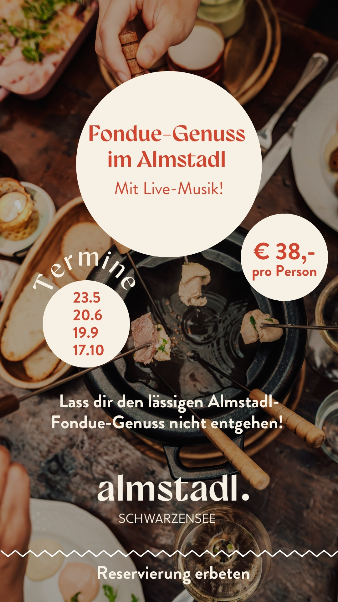 Vom Reindlessen über einen gemütlichen Hüttenabend mit Jausenbrett-XL bis zu einem lässigen Fondueabend mit Weinverkostung. Ob mit Freunden, Familie oder Kollegen. Der Almstadl lässt sich für eure ganz besonderen Anlässe ab 25 Personen exklusiv buchen.
